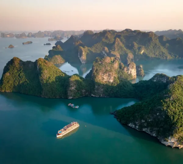 We begin our journey from Ninh Binh to the iconic Ha Long Bay, a UNESCO World Heritage Site. The approximately 3.5 to 4-hour drive takes us through the scenic Vietnamese countryside, giving you a final glimpse of rural life before we reach the coast. Upon arrival, you'll board a traditional day cruise boat and sail through the bay's iconic seascape of thousands of limestone islands and islets. You'll enjoy a fresh seafood lunch on board and have the chance to explore one of the bay's magnificent caves, like Sung Sot (Surprise) Cave.