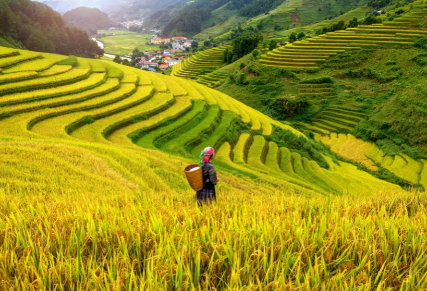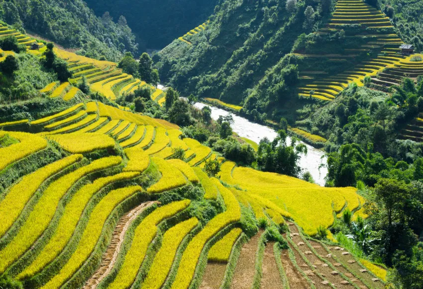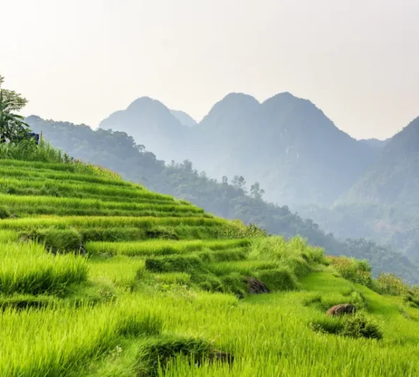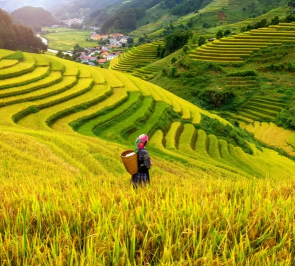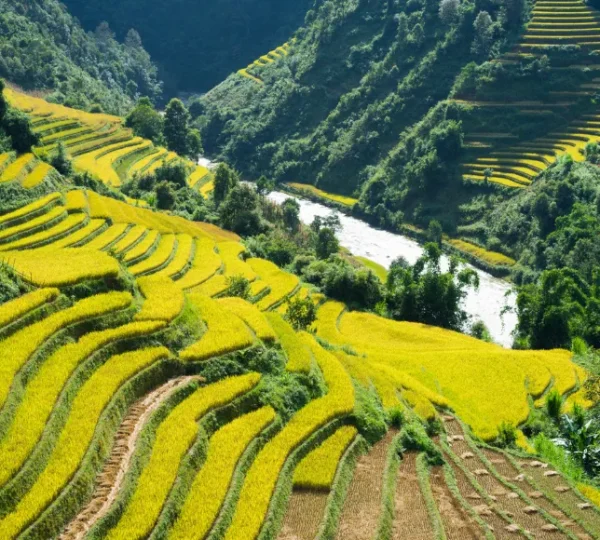 After breakfast at your lodge in the peaceful Mai Chau Valley, begin your overland journey to Mu Cang Chai—one of Vietnam’s most breathtaking highland destinations (approx. 6–7 hours by road). The scenic drive takes you through a dramatic landscape of terraced rice fields, ethnic minority villages, and winding mountain passes.